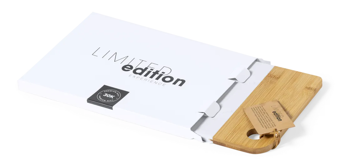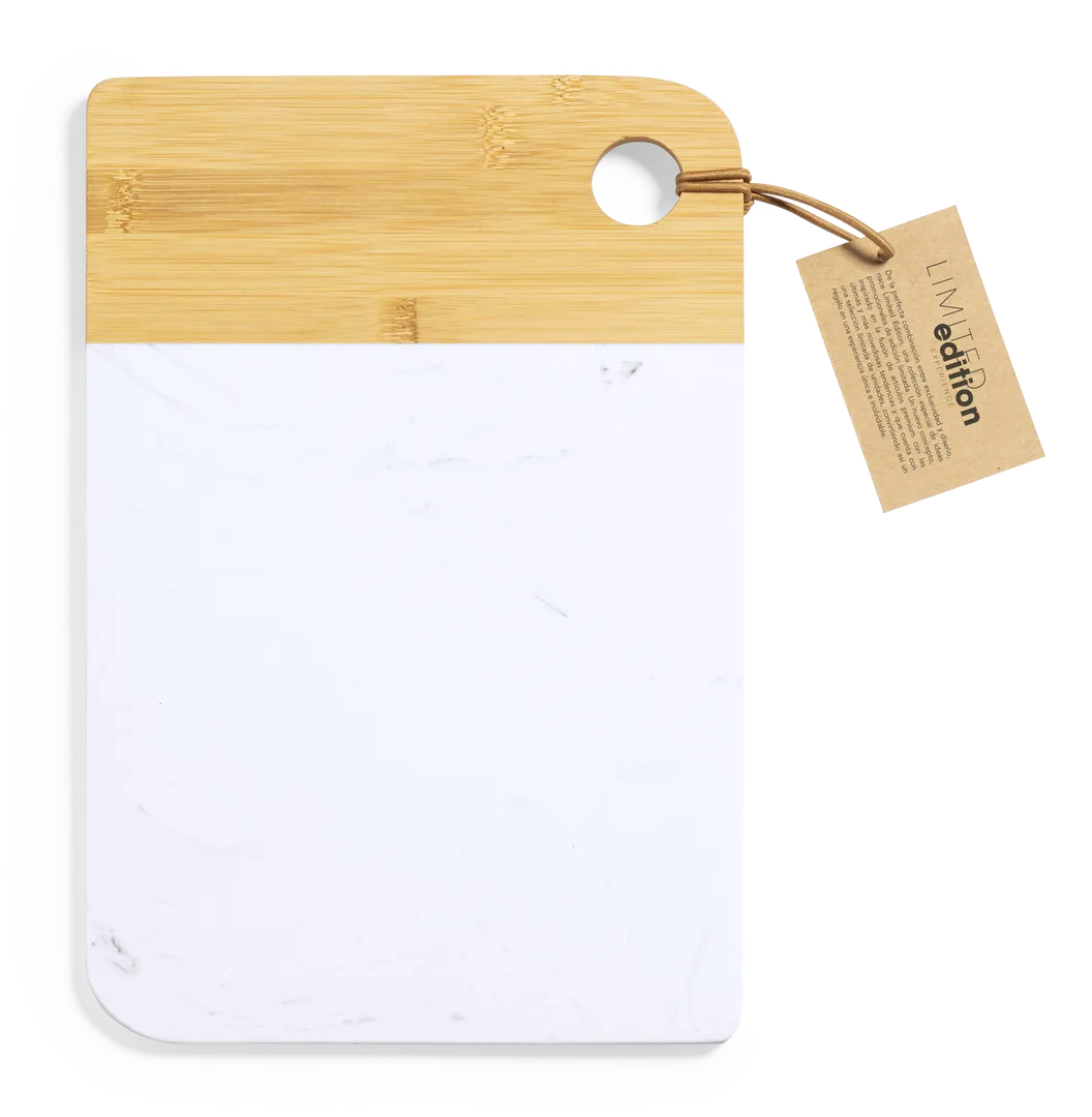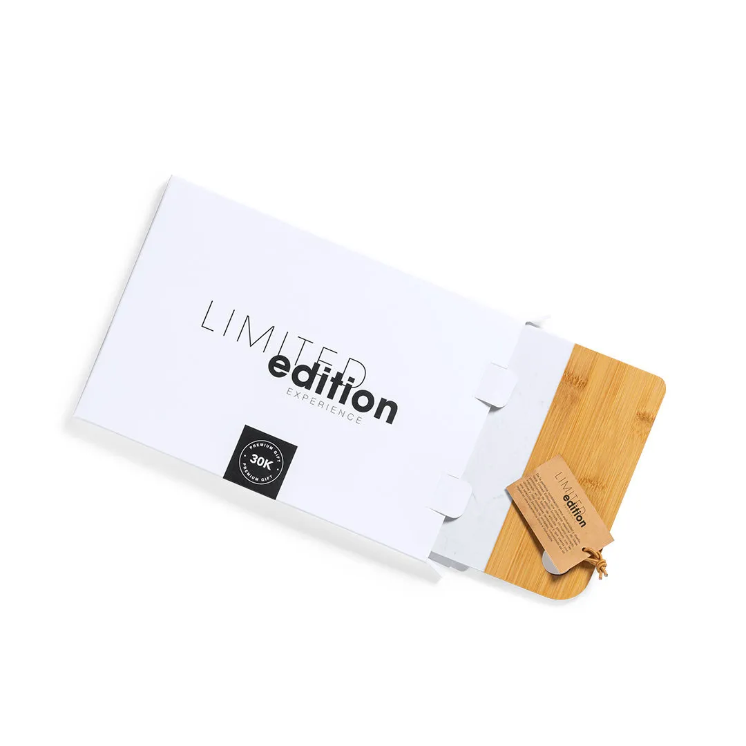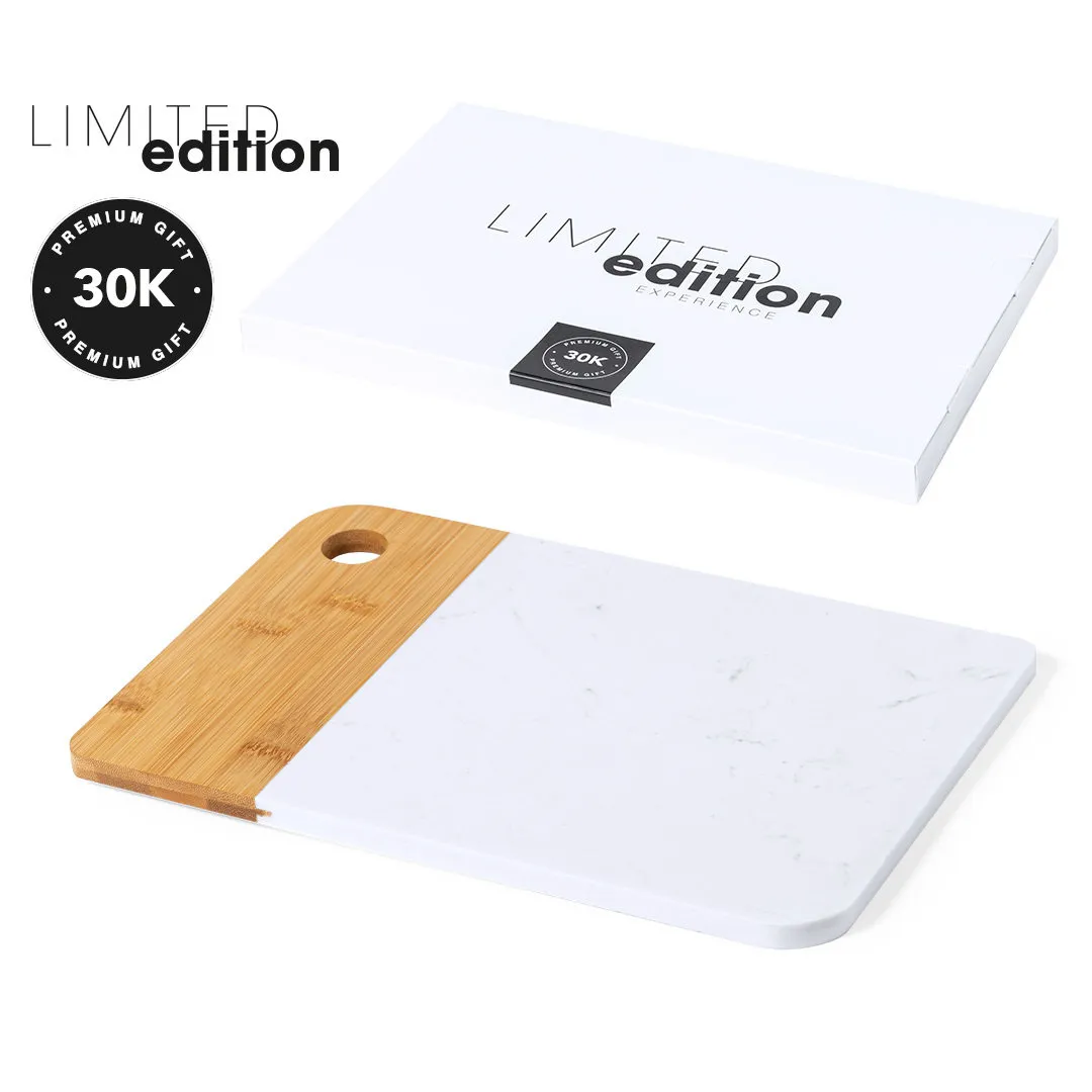 Tabla de corte y presentación Limited Edition. Un nuevo estilo que combina lo moderno y tradicional. Fabricada a partir de materiales naturales como el bambú y extracto de mármol. De suave y resistente acabado pulido. De la perfecta combinación entre exclusividad y diseño, nace Limited Edition, una colección especial de ideas promocionales de edidición limitada. Un nuevo concepto, inspirado en la fusión de artículos premium con las últimas y más novedosas tendencias y que cuenta con una seleción limitada de unidades, convirtiendo así un regalo en una experiencia única e inolvidable. Exclusivo estuche de presentación Limited Edition, con diseño protegido por derechos de propiedad industrial. Incluida tarjeta con descripción de Limited Edition en cartón reciclado.