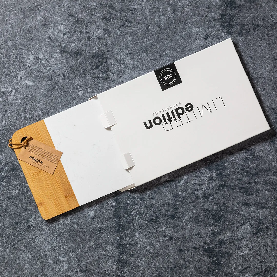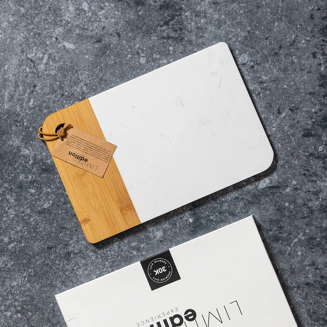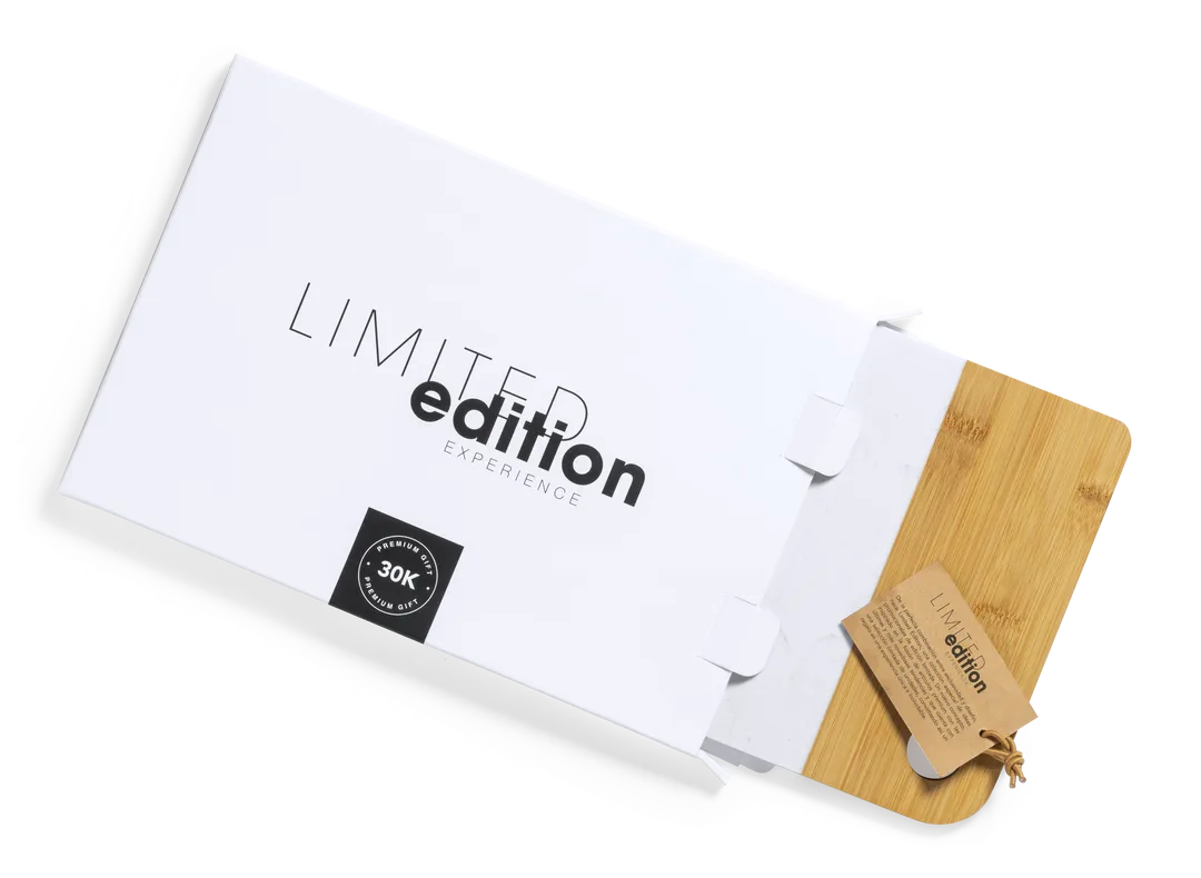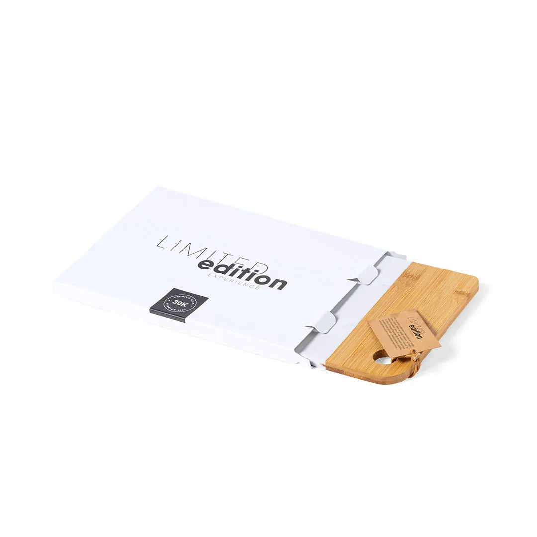 Tabla de corte y presentación Limited Edition. Un nuevo estilo que combina lo moderno y tradicional. Fabricada a partir de materiales naturales como el bambú y extracto de mármol. De suave y resistente acabado pulido. De la perfecta combinación entre exclusividad y diseño, nace Limited Edition, una colección especial de ideas promocionales de edidición limitada. Un nuevo concepto, inspirado en la fusión de artículos premium con las últimas y más novedosas tendencias y que cuenta con una seleción limitada de unidades, convirtiendo así un regalo en una experiencia única e inolvidable. Exclusivo estuche de presentación Limited Edition, con diseño protegido por derechos de propiedad industrial. Incluida tarjeta con descripción de Limited Edition en cartón reciclado.