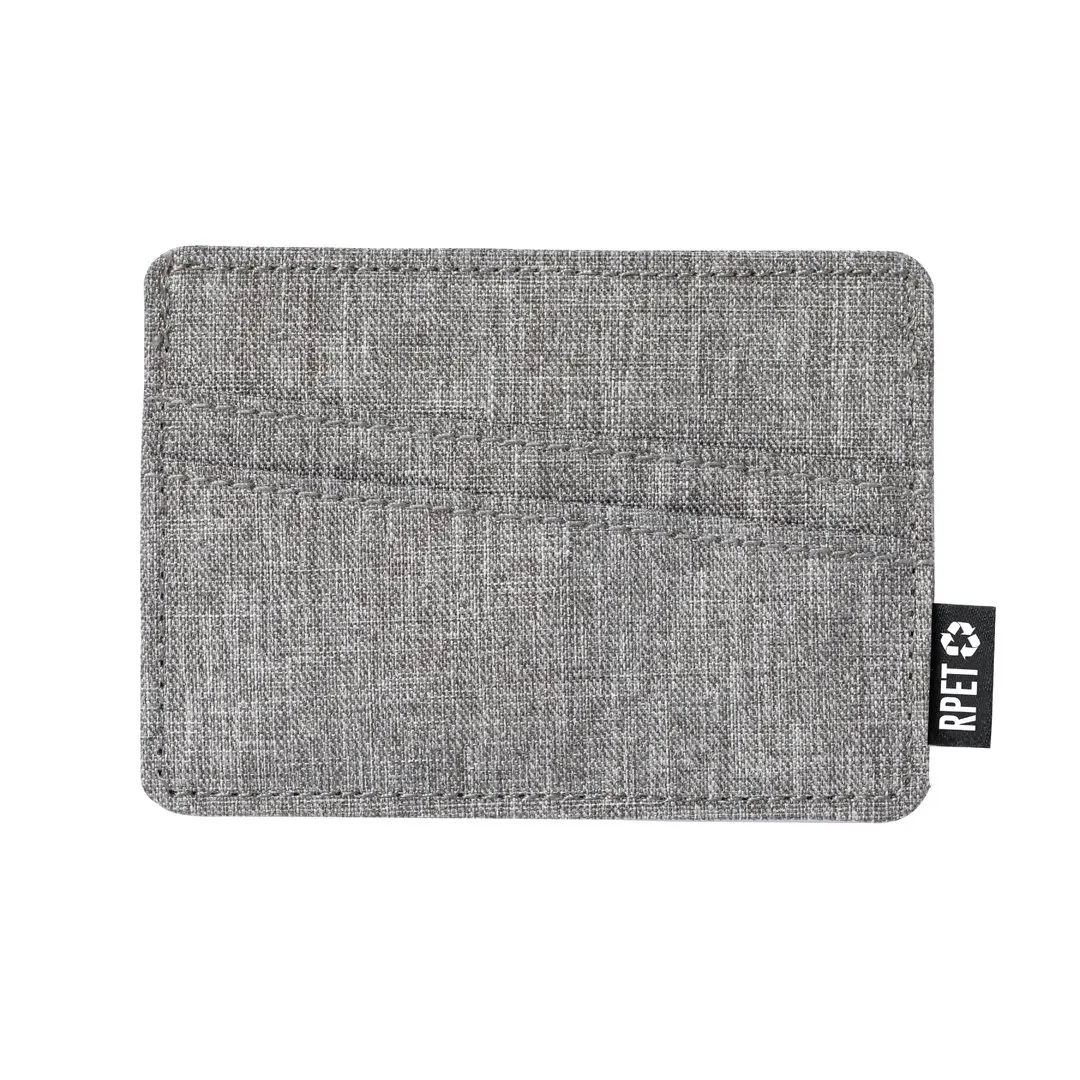 Elegante tarjetero fabricado en poliéster RPET 300D. Con 3 compartimentos independientes para tarjetas y distintivo RPET en la etiqueta exterior. El material RPET se elabora a partir de plástico reciclado, para así fomentar la reutilización de residuos plásticos y ayudar a la sostenibilidad del planeta.
