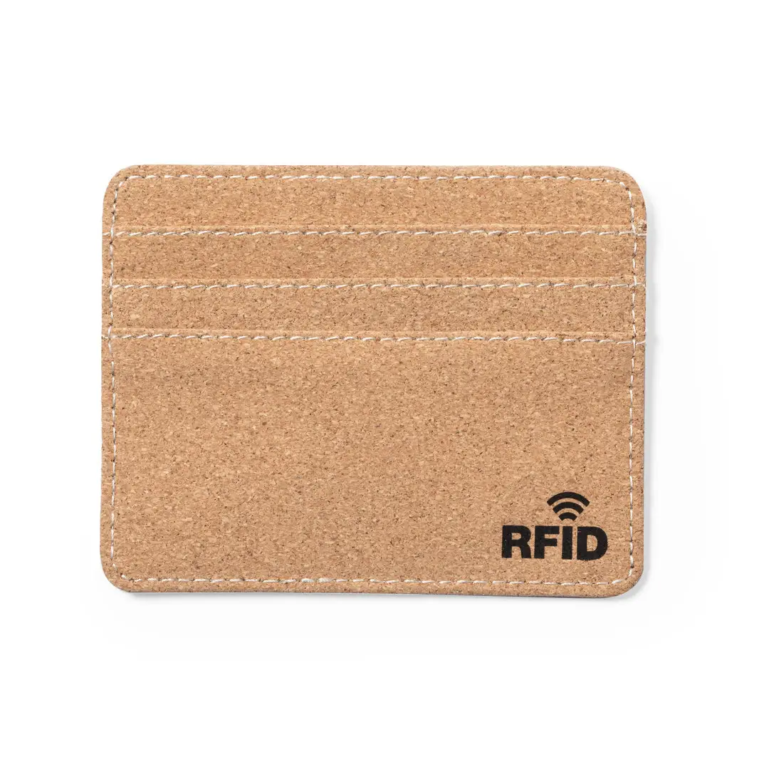 Elegante tarjetero fabricado en corcho natural. Con 6 compartimentos independientes para tarjetas y tecnología de seguridad RFID (Identificación por Radio Frecuencia) que mantiene seguros tus dispositivos de transmisión de identidad. Distintivo RFID en el exterior.