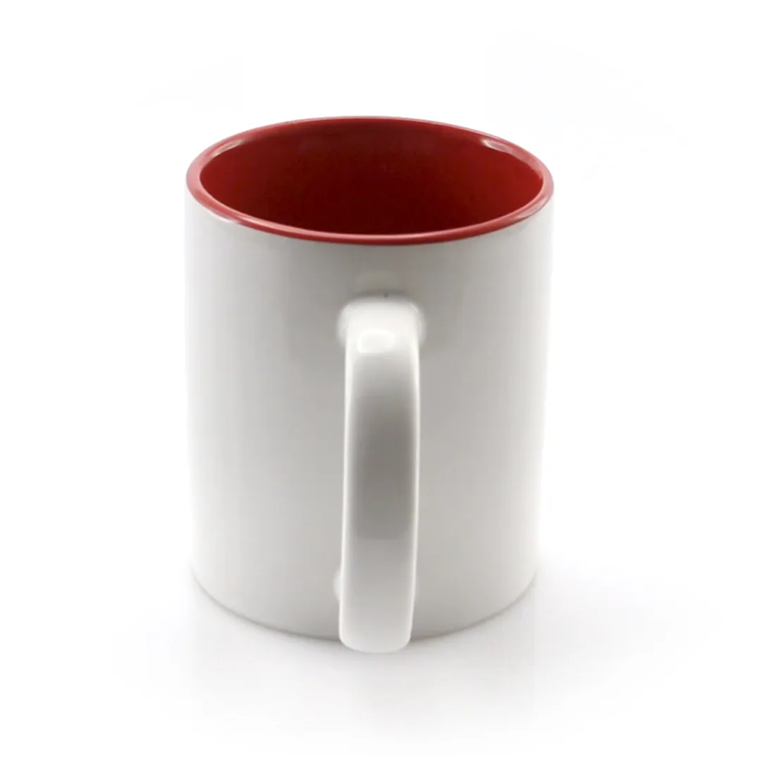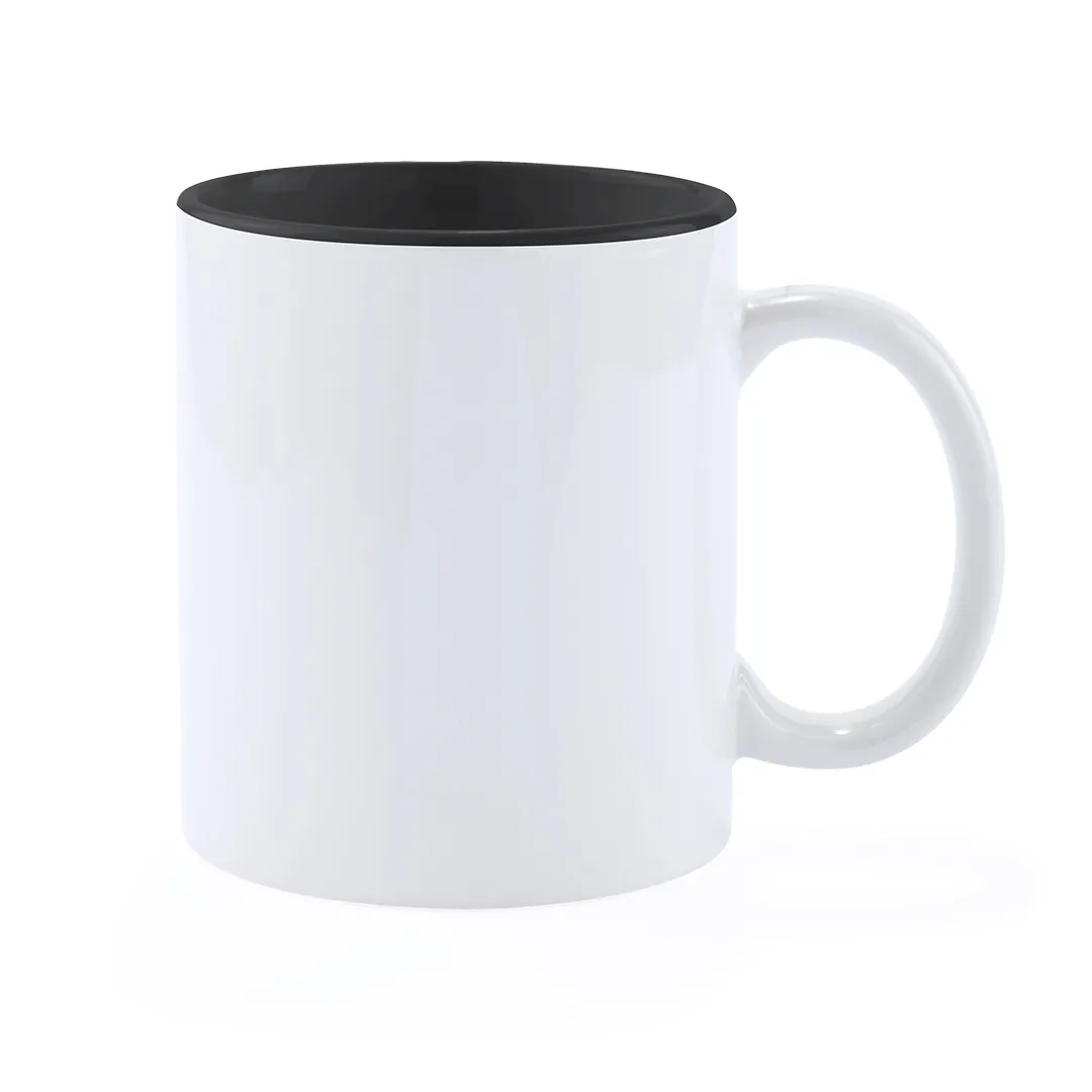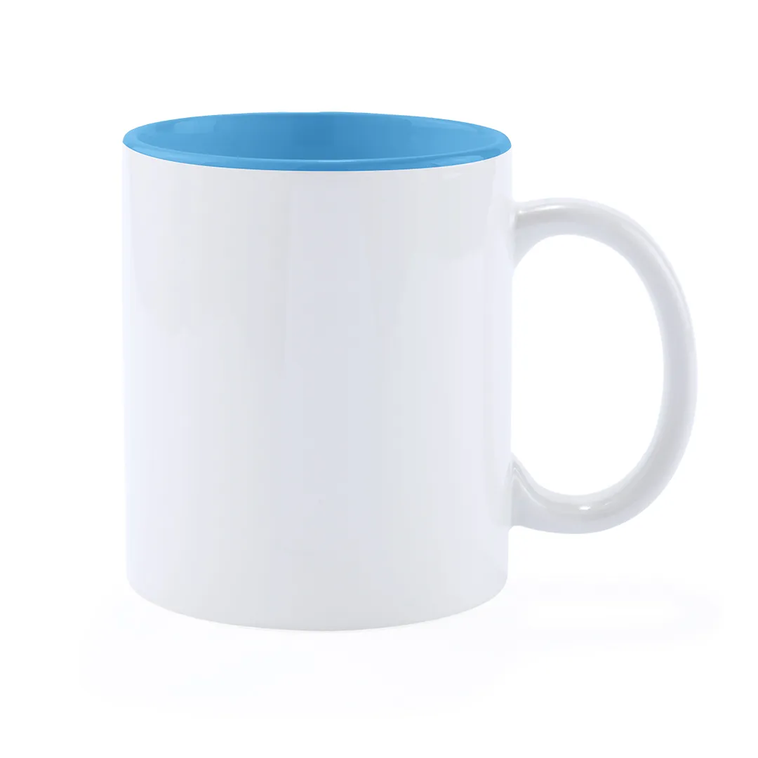 Taza de cerámica de 370ml de capacidad en divertida combinación de exterior en color blanco e interior en gama de vivos colores. Presentada en caja individual.