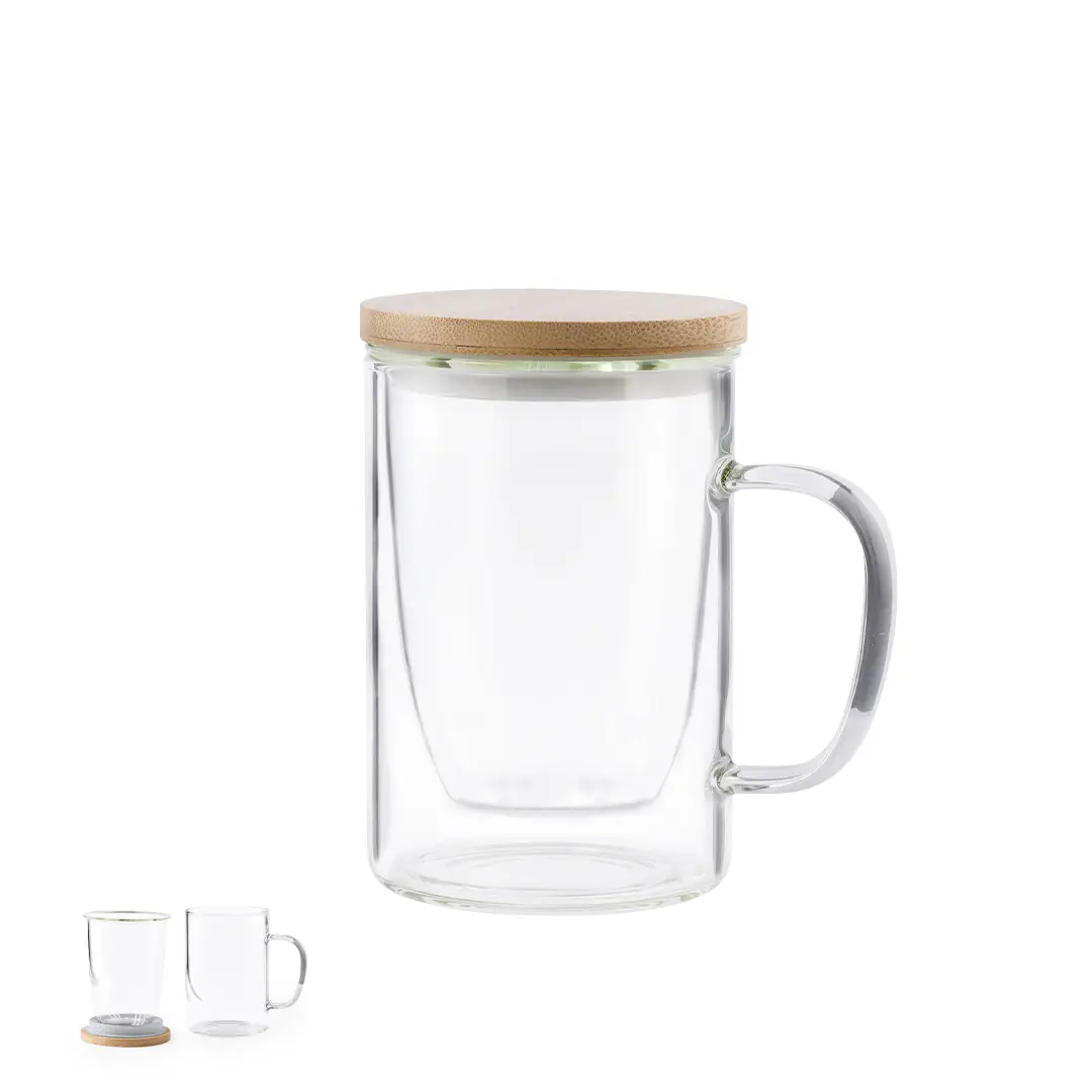 Taza para infusiones de línea nature, en alta calidad y de 450ml de capacidad, con infusor incluido. Fabricada en cristal de borosilicato, que ofrece una resistencia y durabilidad excepcionales, alargando su vida útil y pudiendo ser reutilizada infinidad de veces. Tapa en bambú libre de BPA y presentada en atractiva caja de diseño eco.