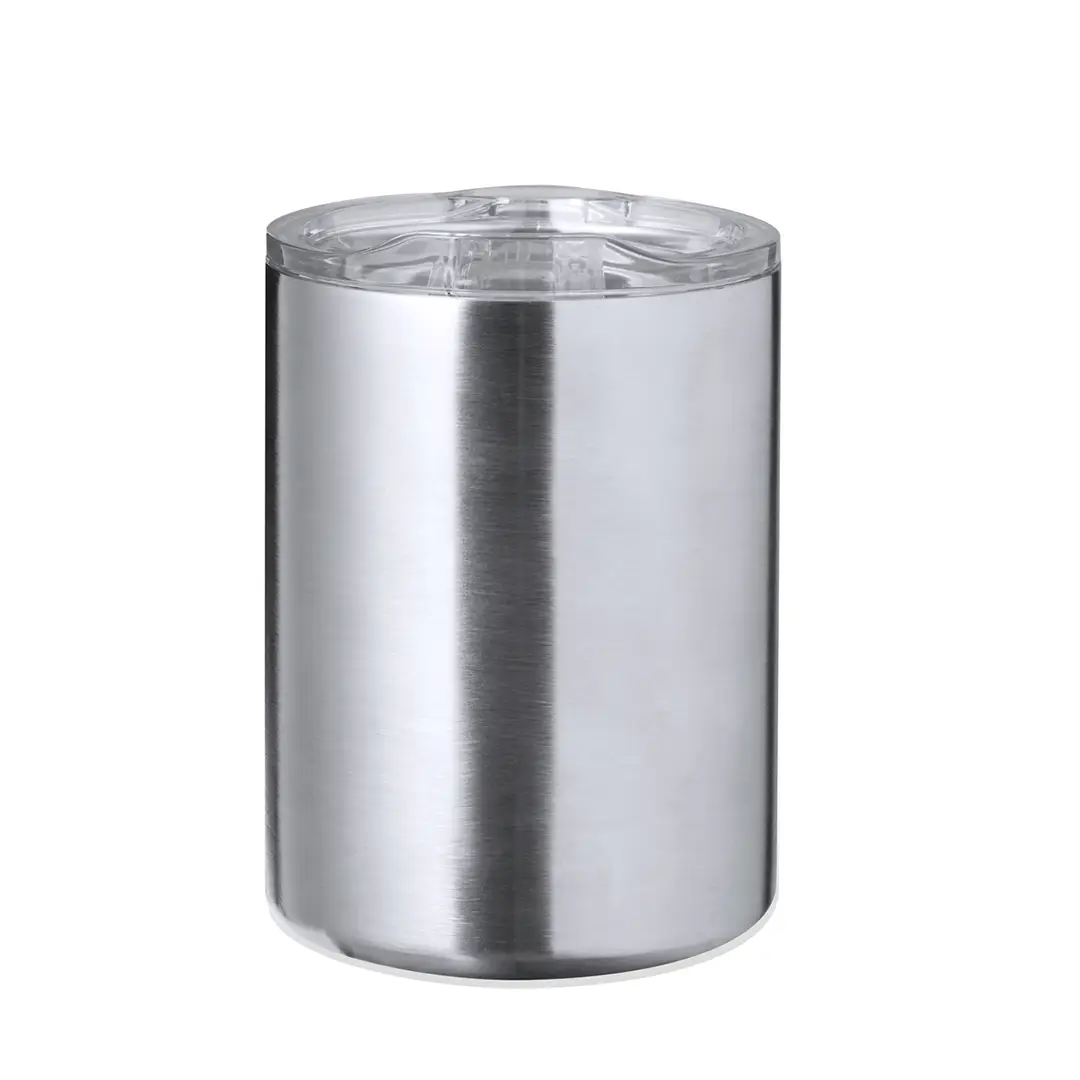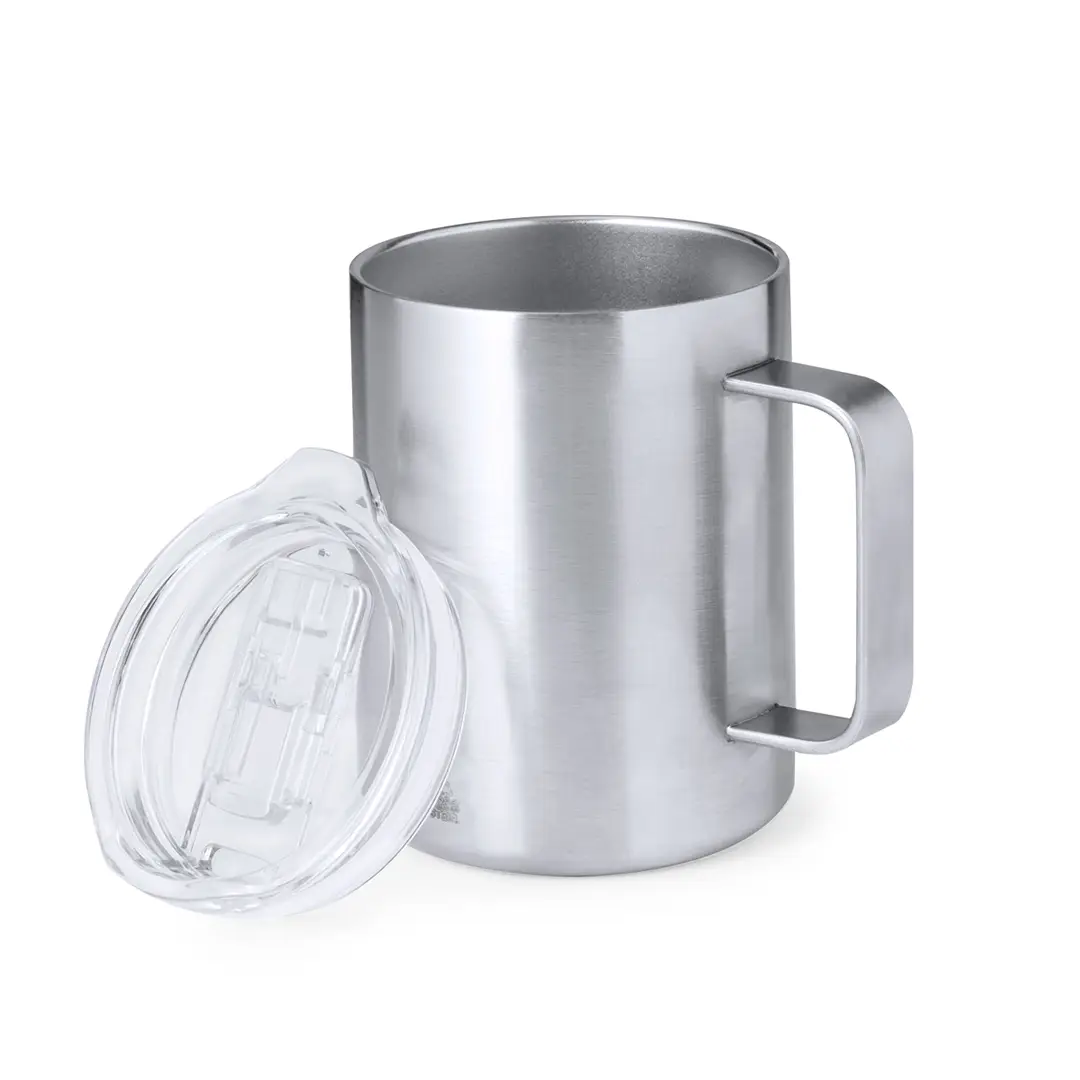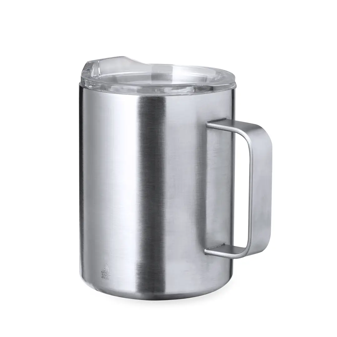 Taza térmica de sobremesa fabricado con acero inox reciclado de doble pared y 370 ml de capacidad. Con dosificador abrefácil en tapa, libre de BPA, y acabado plata. Con logotipo Acero Inox Reciclado. Presentada en caja individual de diseño kraft.El acero es uno de los materiales más demandados y que puede encontrarse casi en todas partes, desde productos de uso diario a grandes construcciones. Con innumerables propiedades, entre las que cabe destacar la durabilidad y su alto grado de reutilización, convirtiéndolo en una alternativa muy valorada en soluciones de sostenibilidad. Debidamente tratado, permite obtener nuevos recursos de infinita utilización.