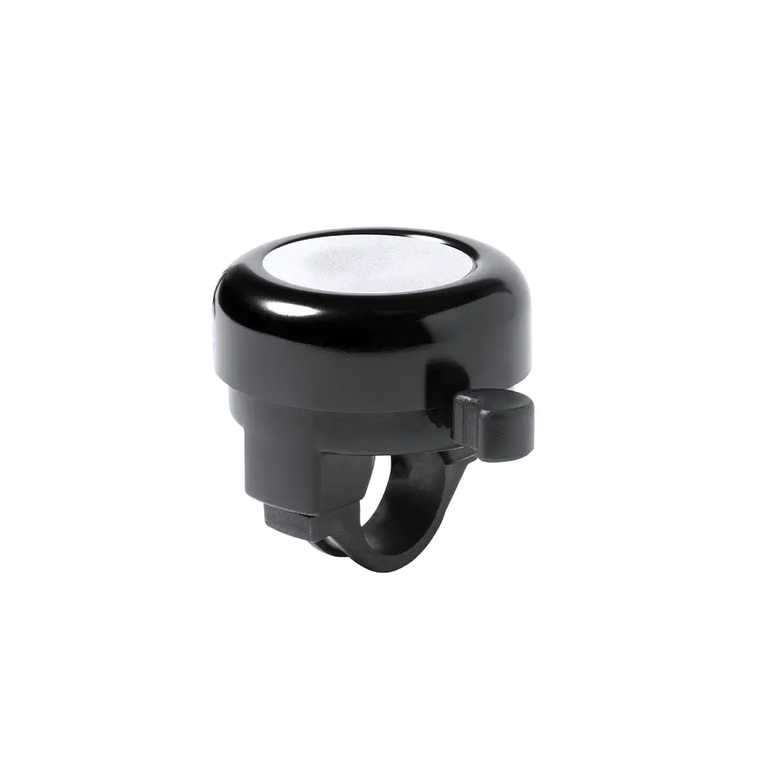 Timbre para bicicleta fabricado en resistente aluminio de acabado brillo. Con ajuste de seguridad para manillar y disponible en variada gama de colores.