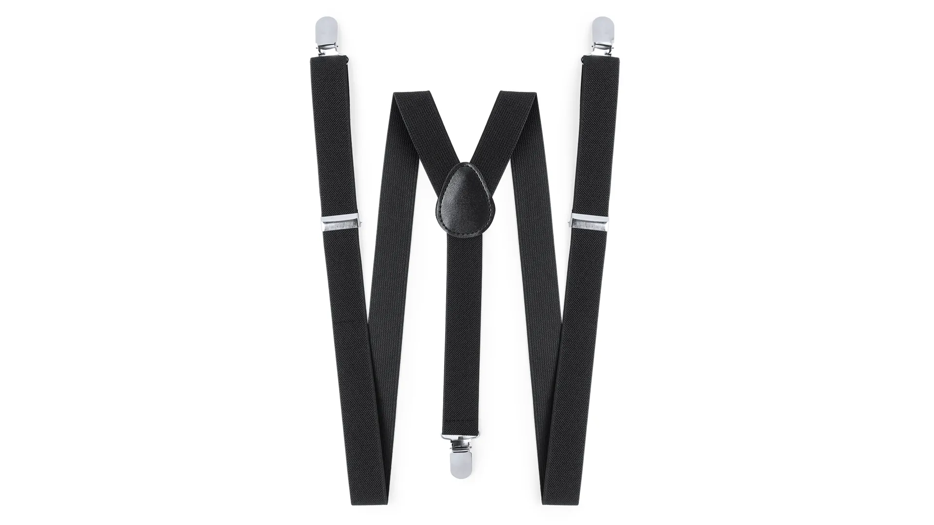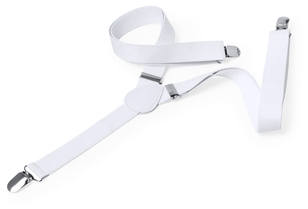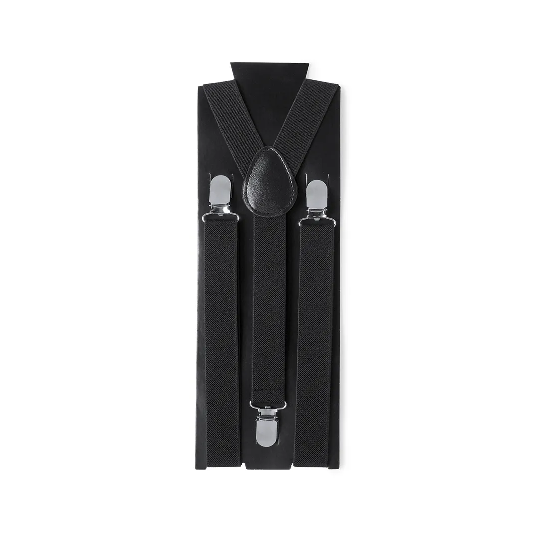 Tirántes elásticos de poliéster en sobrios colores con accesorios metálicos. Con refuerzo de polipiel en espalda a juego y presentados en original cartulina individual de color negro.