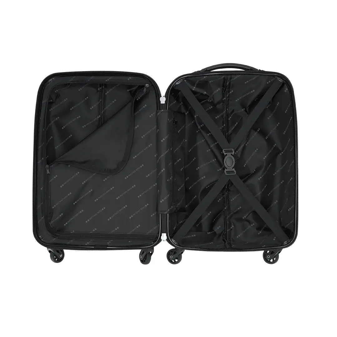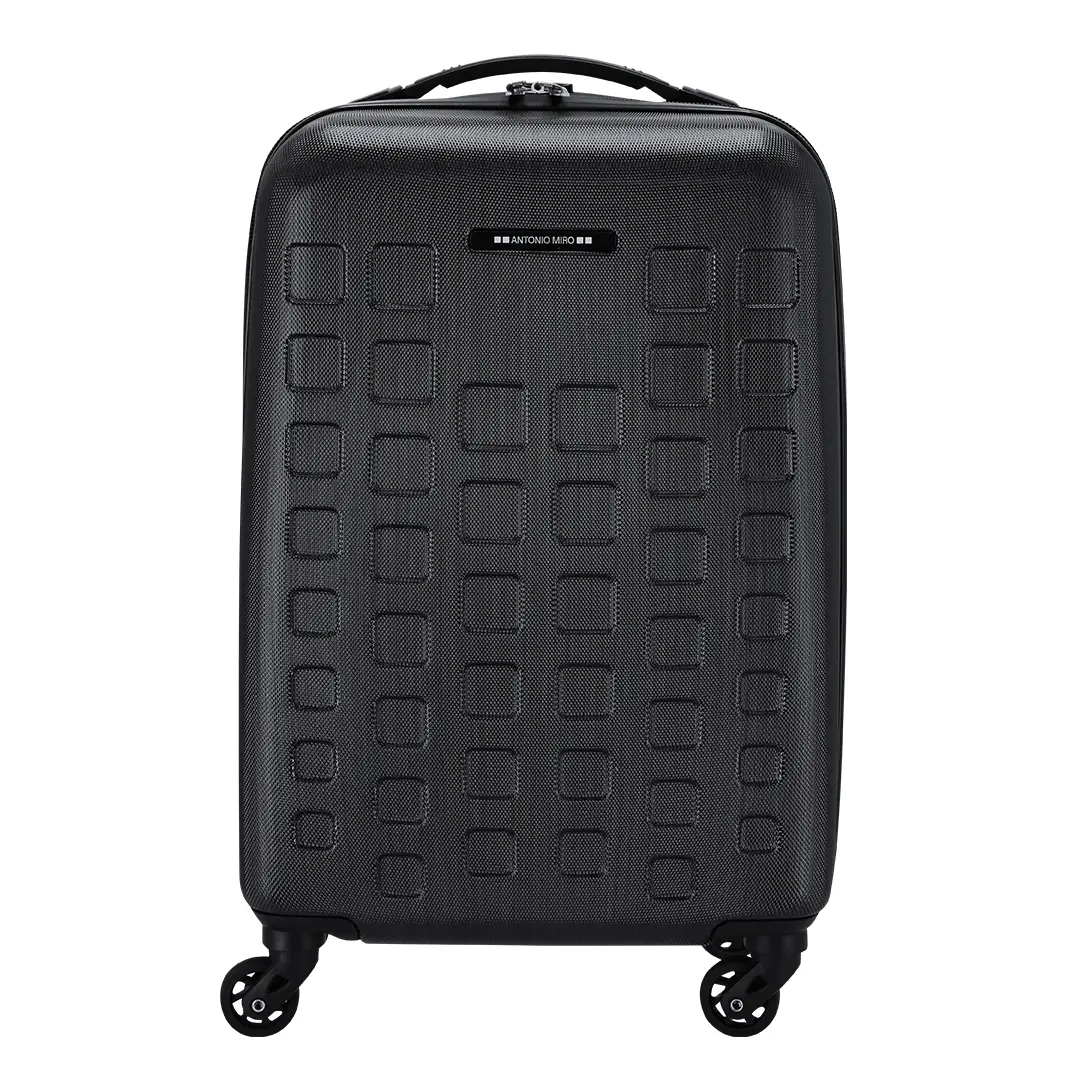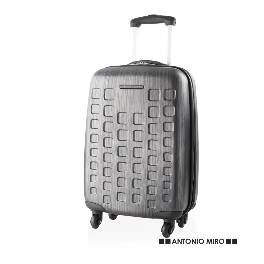 Trolley de Antonio Miró de 4 ruedas telescópicas en material ABS rígido de alta resistencia y elegante diseño de cuadros. Compartimento principal con cierre de cremallera de doble tirador y lateral con cierre de seguridad de combinación numérica. Con asa de mano de cómodo y suave tacto y logotipo de la marca en chapa exterior. Interior forrado, de doble compartimento con cintas elásticas de sujeción.