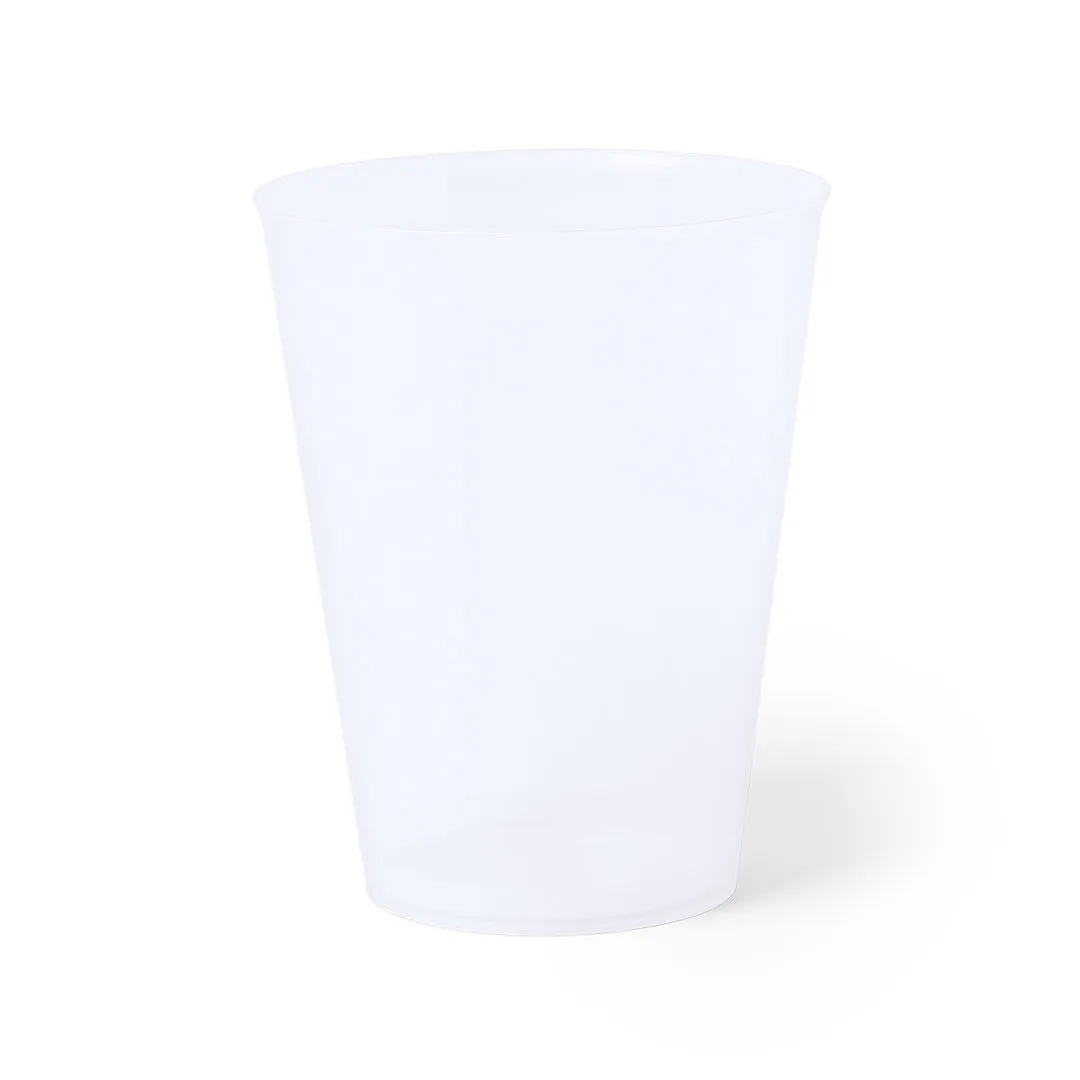 Vaso de 500ml de capacidad en resistente y flexible material PP. Reutilizable y en acabado translúcido.
