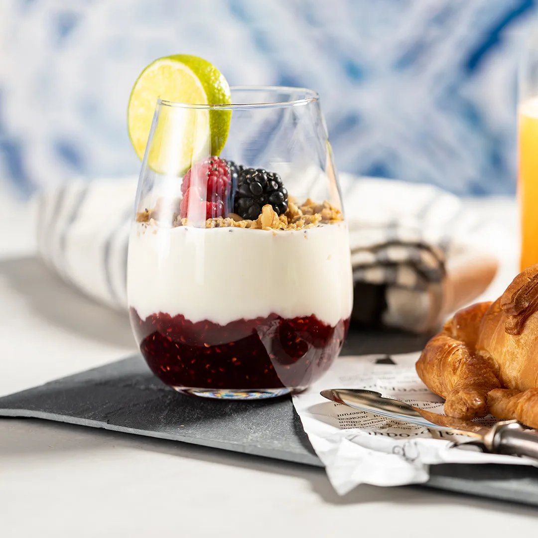 Vaso de cristal de 500ml de capacidad. Con atractivo diseño curvado y presentado en caja individual de diseño kraft.