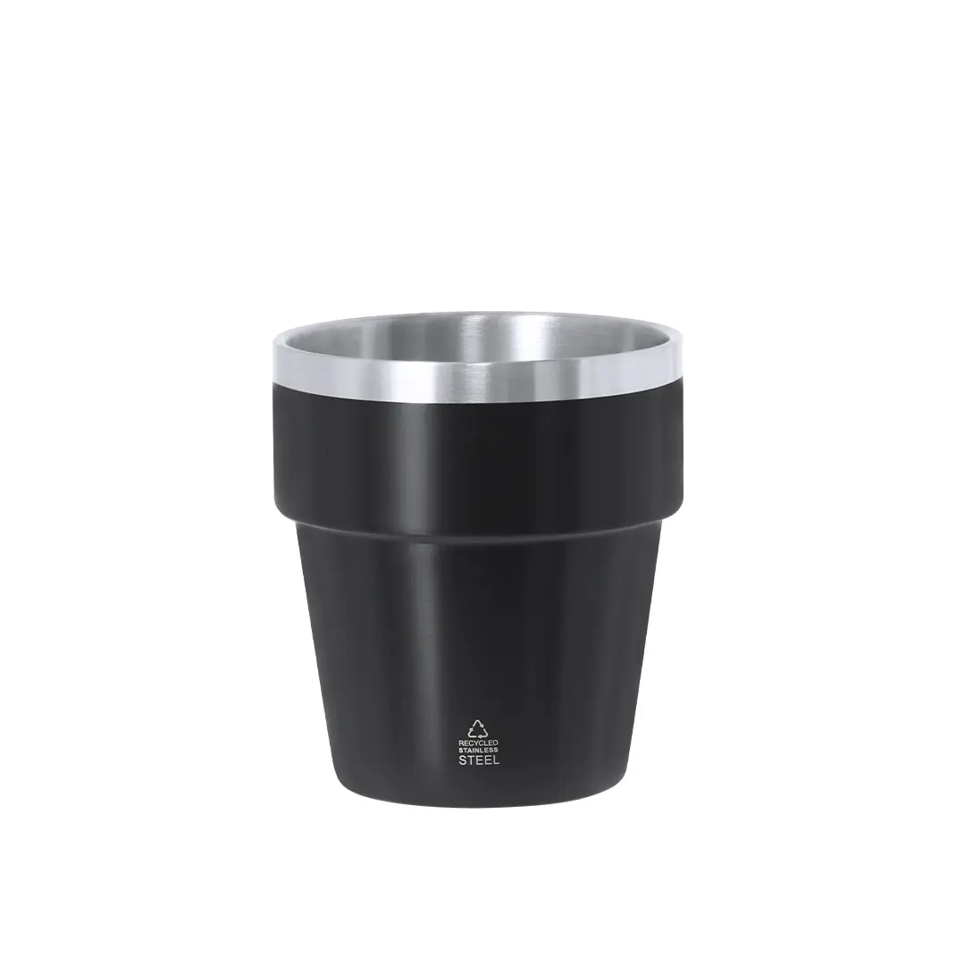 Vaso térmico fabricado en Acero Inox Reciclado de doble pared y 250 ml de capacidad. Recubrimiento en color satinado y borde e interior en color acero satinado. Con logotipo Acero Inox Reciclado.El acero es uno de los materiales más demandados y que puede encontrarse casi en todas partes, desde productos de uso diario a grandes construcciones. Con innumerables propiedades, entre las que cabe destacar la durabilidad y su alto grado de reutilización, convirtiéndolo en una alternativa muy valorada en soluciones de sostenibilidad. Debidamente tratado, permite obtener nuevos recursos de infinita utilización.