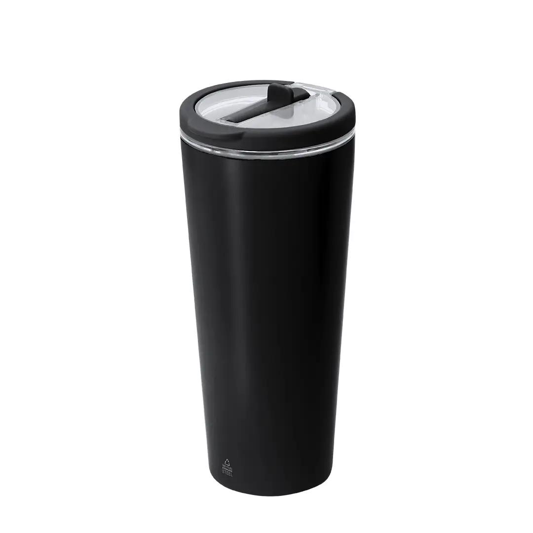 Elegante vaso térmico de acero inoxidable reciclado de doble pared y 700 ml de capacidad. De acabado mate, con tapa a rosca transparente y pajita a juego. Libre de BPA.