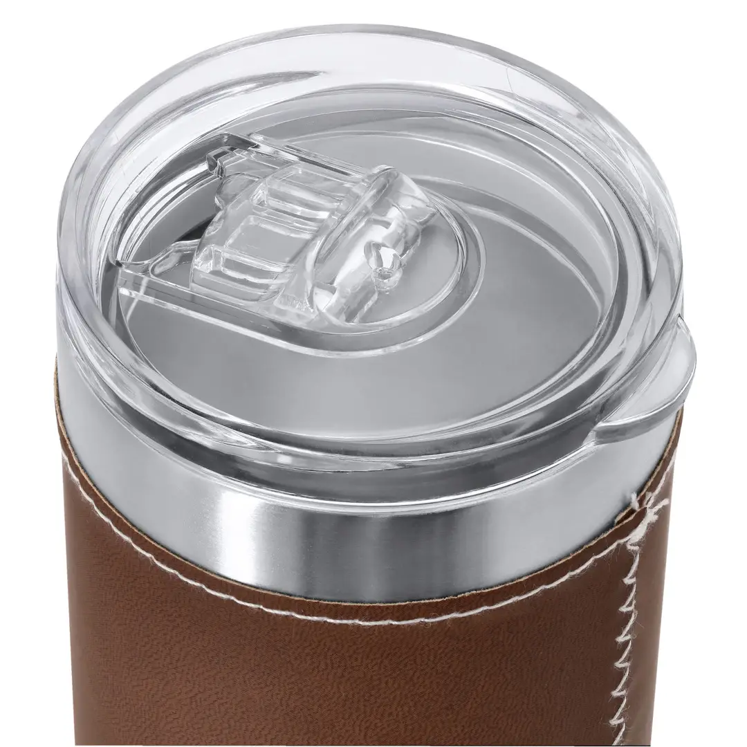 Vaso térmico fabricado en acero inox de doble pared y sofisticada PU. Con 530 ml de capacidad. Incluye elegante fajín de PU, confeccionado con distinguidas puntadas blancas. Incluye tapadera transparente con dosificador en tapa y de fácil apertura, libre de BPA. Es ideal para tener en tu escritorio, mesa o en cualquier superficie donde disfrutar tranquilamente de tu bebida favorita.