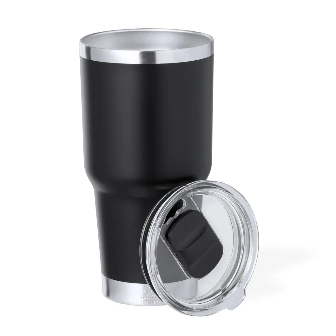 Vaso térmico fabricado en acero inox reciclado de doble pared y 600 ml de capacidad. Con dosificador en tapa y abrefácil, libre de BPA. Es ideal para tener en tu escritorio, mesa o en cualquier superficie donde disfrutar tranquilamente de tu bebida favorita. Con logotipo Acero Inox Reciclado. El acero es uno de los materiales más demandados y que puede encontrarse casi en todas partes, desde productos de uso diario a grandes construcciones. Con innumerables propiedades, entre las que cabe destacar la durabilidad y su alto grado de reutilización, convirtiéndolo en una alternativa muy valorada en soluciones de sostenibilidad. Debidamente tratado, permite obtener nuevos recursos de infinita utilización.
