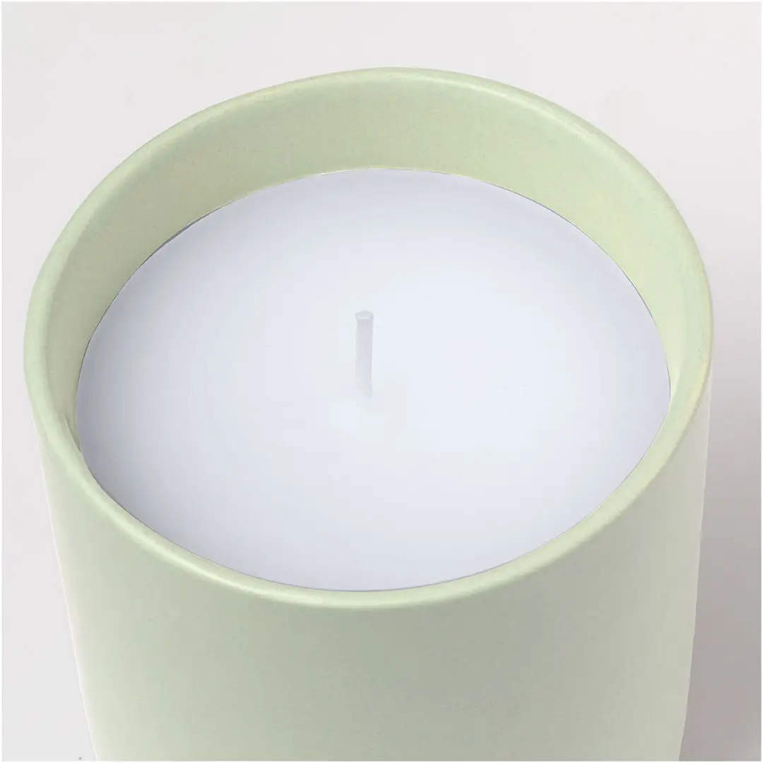 Vela aromática en tarro de cerámica con aroma a vainilla. Disponible en cristal de elegantes colores de tonos naturales. Presentada en caja individual diseño kraft.