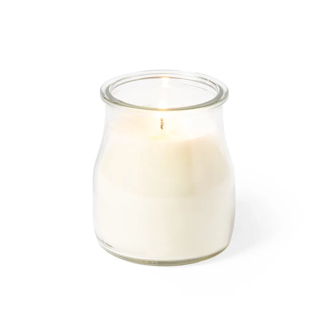 Vela aromática en tarro de cristal, disponible en aromas variados: blanco vainilla rojo frutas del bosque azul océano y verde musgo. Con distintivo Made In Europe.