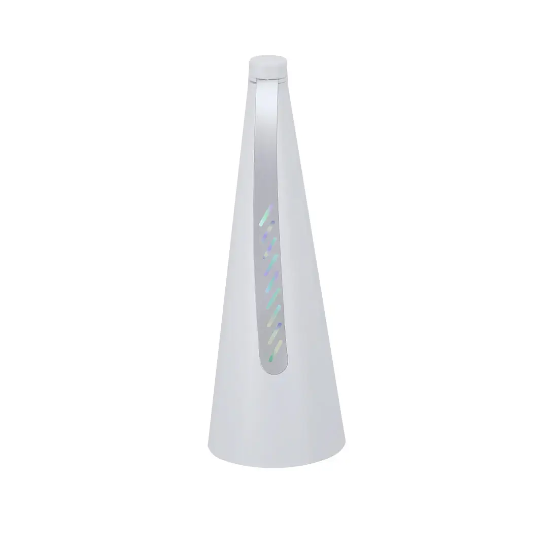 Ventilador Antimoscas diseñado para mantener los insectos alejados de forma eficiente y sin ruido. Incorpora dos aspas equipadas con 9 líneas plateadas de efecto UV que generan un patrón visual efectivo para repeler moscas y otros insectos.Su base cónica garantiza estabilidad en cualquier superficie. Con botón de encendido/apagado. Totalmente portátil. Ideal para emplear en interiores o al aire libre. Funciona con 2 pilas AA (no incluidas).